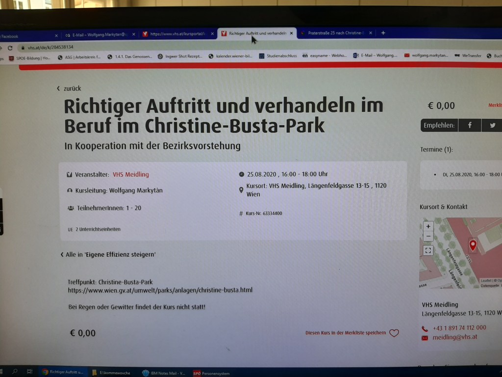 Ich freue mich immer wieder, wenn ich auch einmal im Rahmen der Wiener Volkshochschulen auftreten darf. Gestern gab es ein besonderes Angebot: Seminar in einem Park, dem Christine Busta Park in Meidling. Somit konnten auch Hygieneregeln gut eingehalten werden.