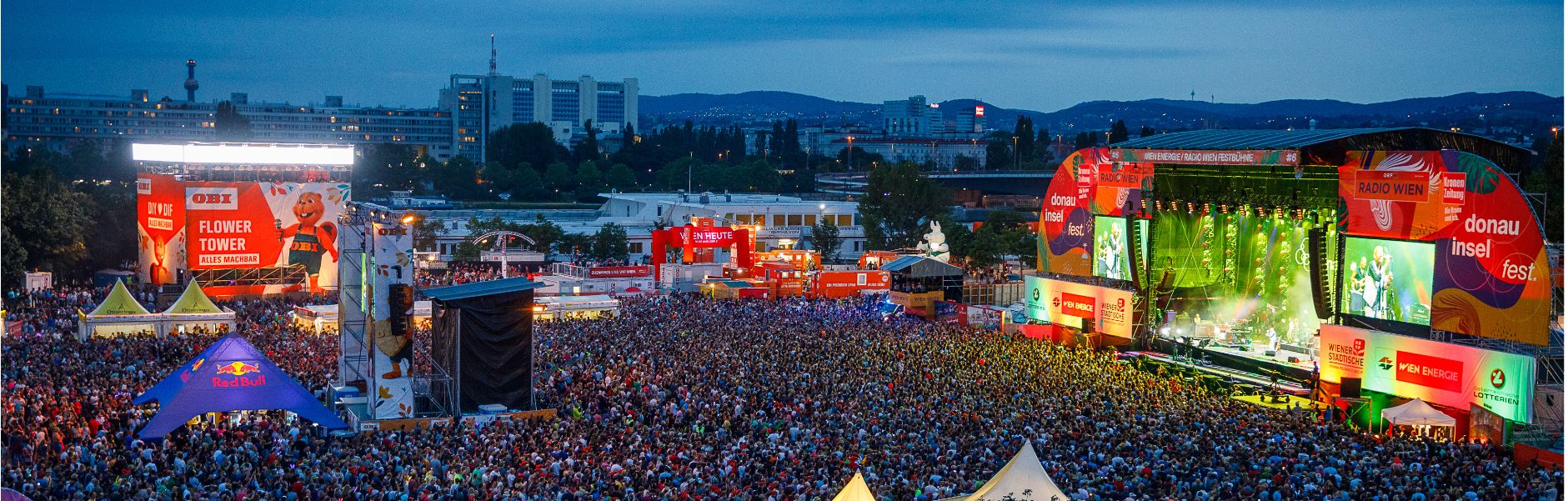 Infos und Bild unter: https://donauinselfest.at/News/ und https://de.wikipedia.org/wiki/Donauinselfest