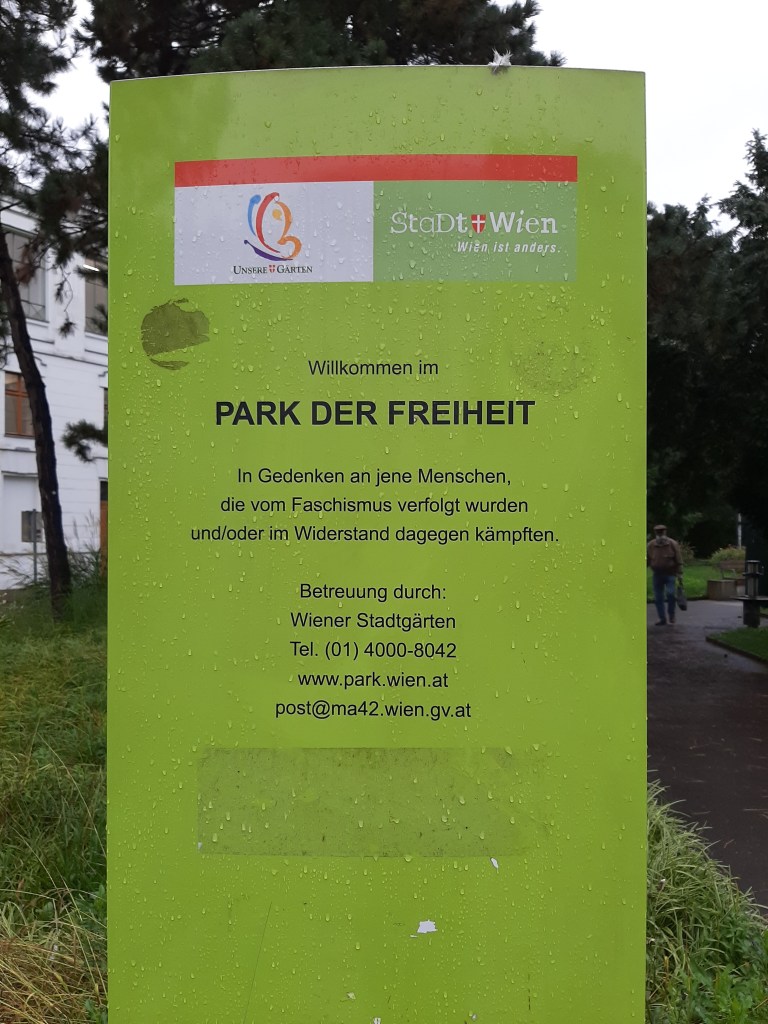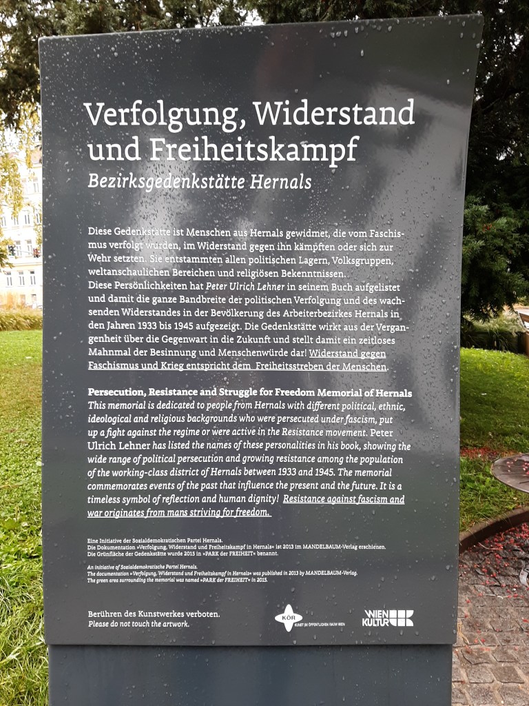 Infos: https://www.erinnern.at/bundeslaender/wien/termine/bezirksgedenkstaette-wien-hernals-park-der-freiheit und https://www.koer.or.at/projekte/denkmal-verfolgung-widerstand-und-freiheitskampf-in-hernals-1933-1945/