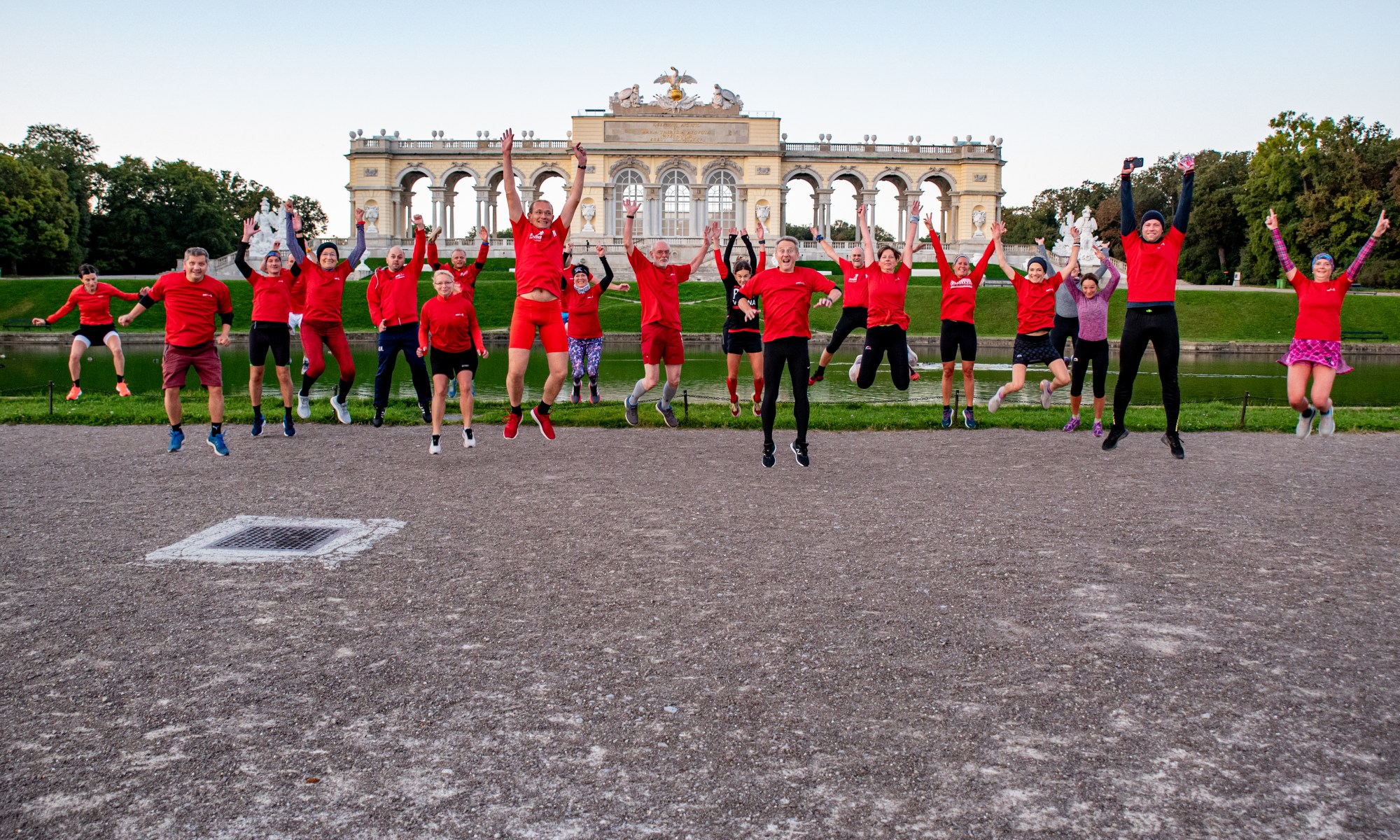 Und es war das erwartete Erlebnis: Tolle Gespräche, sympathische Leute und viele Wiedersehen! Und dann das Abarbeiten der Gloriette-Serpentinen! Abschluss mit Hüpffoto!
