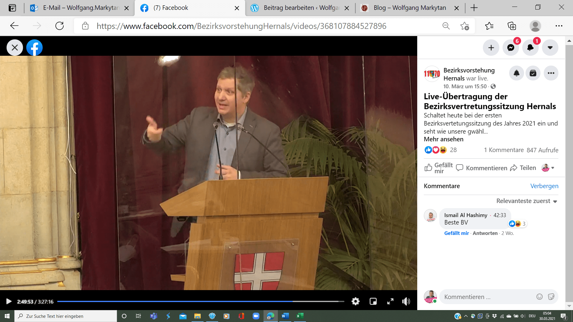 Am Mittwoch, dem 9. Juni 2021 fand die Sitzung der Bezirksvertretung des 17. Bezirkes im Festsaal des Rathauses statt. Aufgrund der anhaltenden COVID-19 Pandemie wurde die Sitzung unter Einhaltung aller notwendigen Sicherheitsmaßnahmen abgehalten.