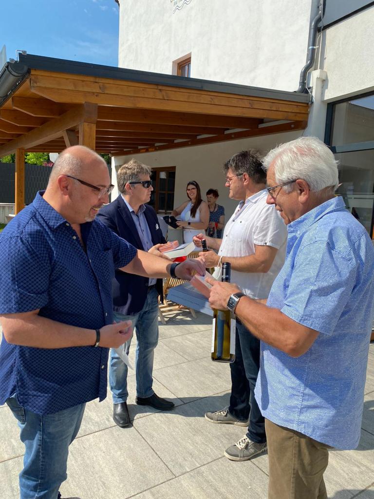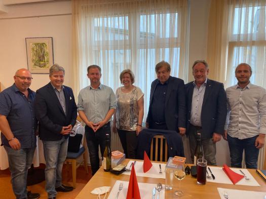 Nach unserer Ankunft im Martinihof in Neudörfl besuchten wir mit Bürgermeister und Landtagsabgeordneten Dieter Posch den Ort der Gründungsstätte der österreichischen sozialdemokratischen Partei, in der heute ein Caritas-Wohnheim für geflüchtete Menschen untergebracht ist. Abends trafen wir zum politischen Austausch mit dem burgenländischen Landesparteisekretär Landtagsabgeordneter Roland Fürst und dem GVV-Bundes-Geschäftsführer Martin Giefing zusammen.