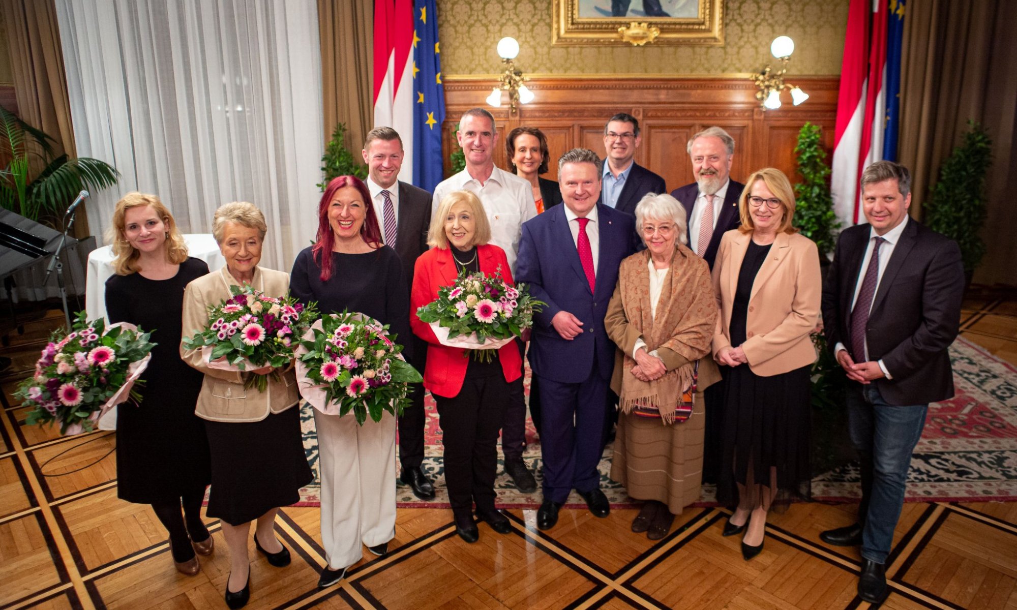Im Bild: „Hausherr“ Bürgermeister Dr. Michael Ludwig und Nationalratspräsidentin Doris Bures, die beide eng mit Rudi befreundet waren und seine Witwe Inge Gelbard.