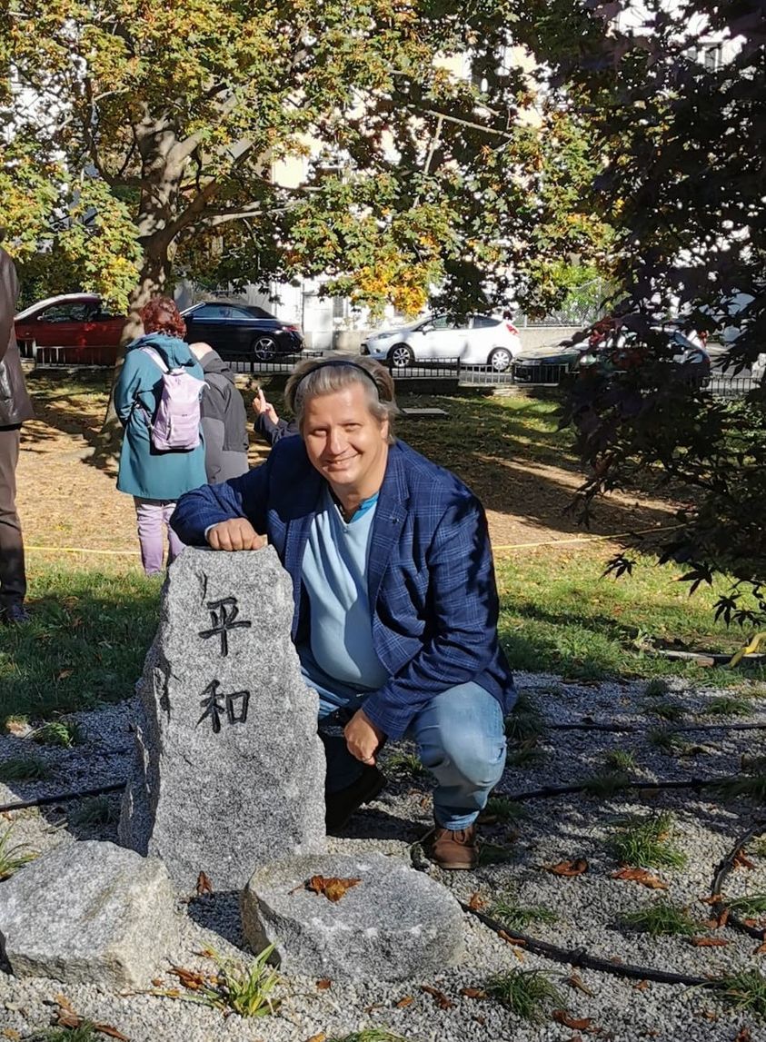 Freut sich als Umweltausschussvorsitzender von Hernals, das wir nun einen Fuchu-Park haben. Dabei wurde der Stein mit dem Zeichen für Friede enthüllt. Gerade in Zeiten wie diesen ist das so wichtig!