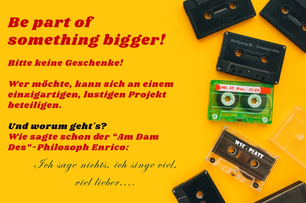 Bitte keine Geschenke mitbringen, werde Teil von etwas Großem (und kleine Spenden für mein Kunstprojekt)….