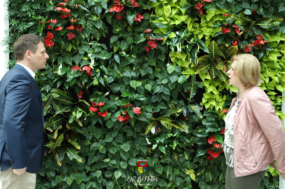 Neben dem funktionalem Gebäude sticht vor allem der große Innenhof und die neue Pflanzenwand heraus.