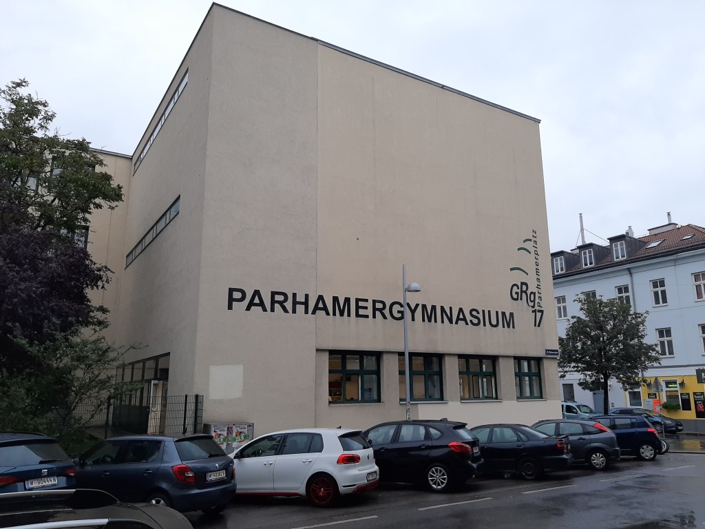 Die Schule hat schon eine lange Geschichte. In der Gemeinderatssitzung vom 27. Jänner 1886 wird der Bau einer Doppelschule am Petersplatz, so der frühere Name des Parhamerplatzes, beschlossen. Angeregt zu diesem Bau hatte der Ortsschulrat von Hernals durch seinen Obmann Friedrich Grüner als Folge der Überfüllung der bereits bestehenden großen Volksschulgebäude in Hernals.